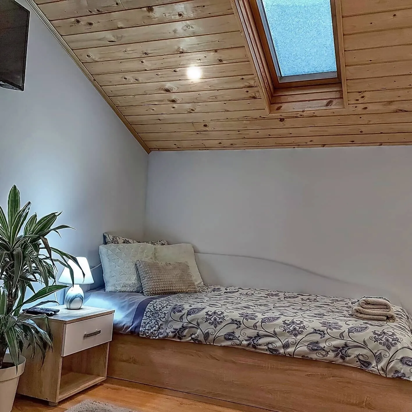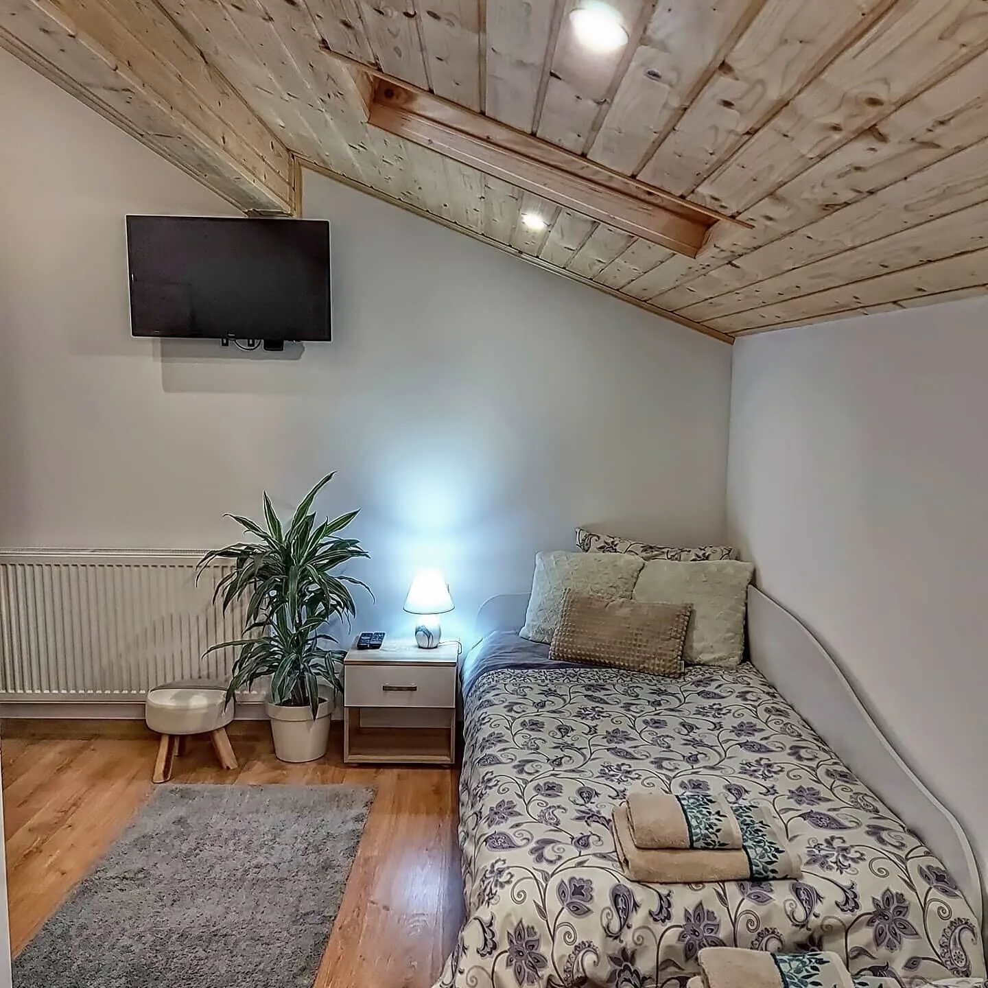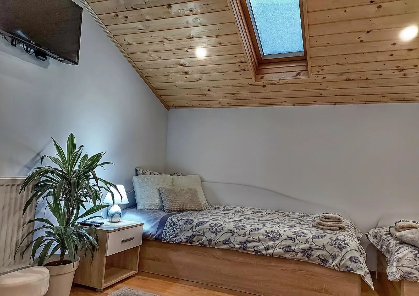 Етаж 3: 2 стаи с по 2 единични легла 90/200 см, ТВ, климатик, обща баня.